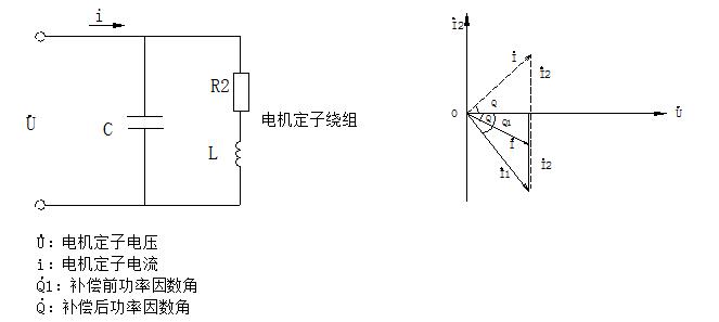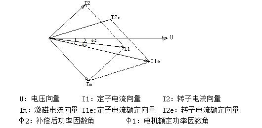 從圖可以看出,靜止式進相器和電容補償對電機的作用點不同,電容是在電機的前端定子側進行補償,其補償范圍是在補償點的前端;靜止式進相器串聯在電機的后端,其補償范圍擴大到了電機。
